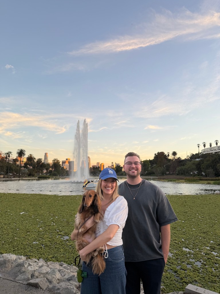 Winston and I went to visit my brother, Drew, who lives in LA. Here we are in Echo Park, the same park where I Love LA‘s poster was shot.